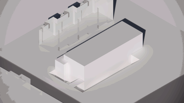 针对地块条件,在多方案的推演中,设计师加入L形的下沉景观庭院,将建筑和住区外的场地进行切割。一方面成功的将服务社区居民的生活配套功能内置与庭院完美结合,使用者的私密性与安全性得以保障;另一方面则打破用地狭长的限制,将建筑的立面在竖向上进行延展,形体更加丰富优雅。