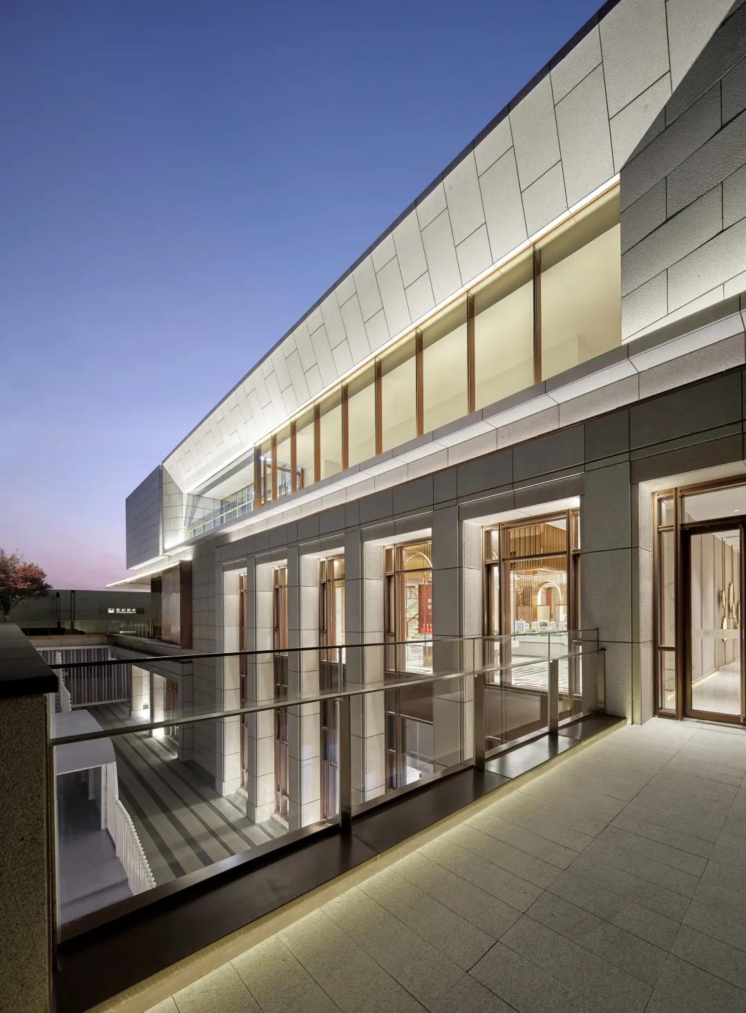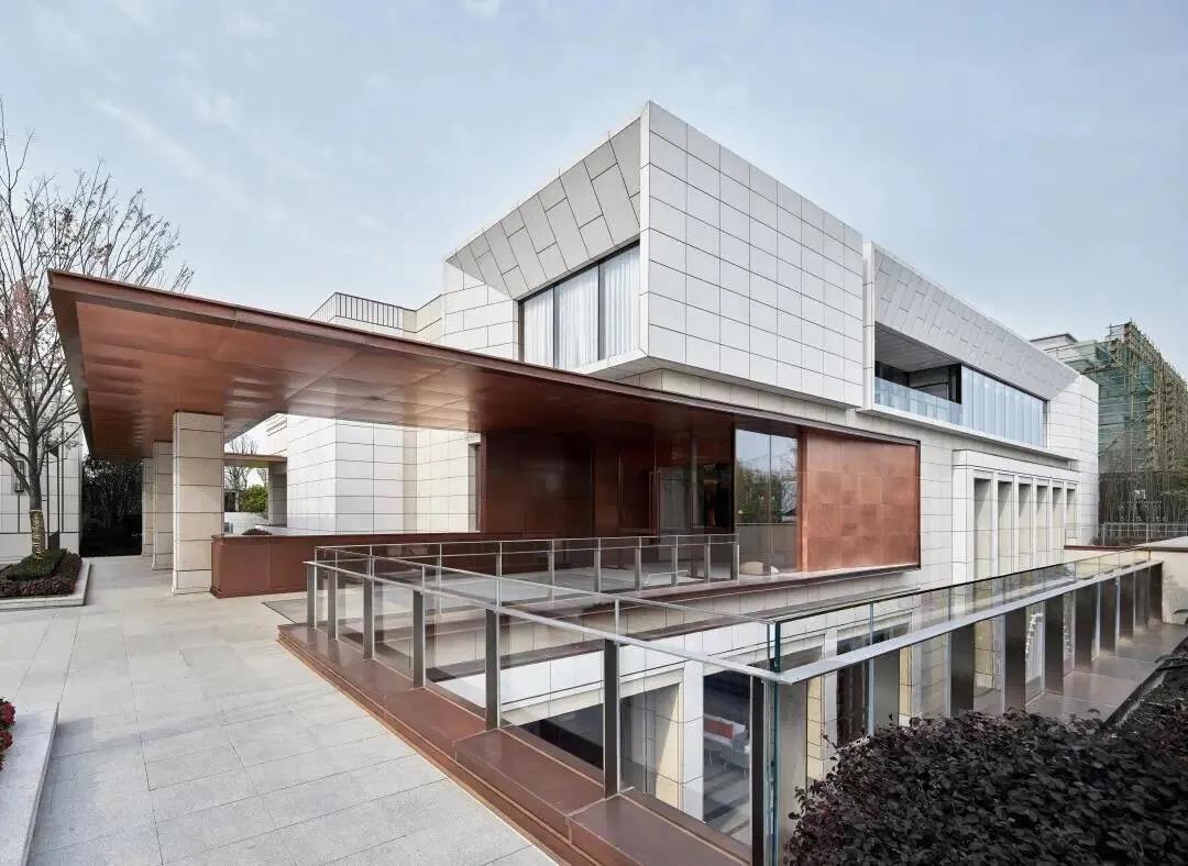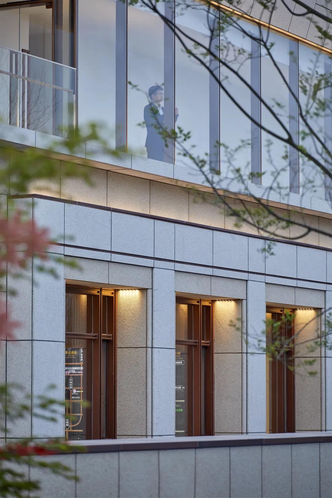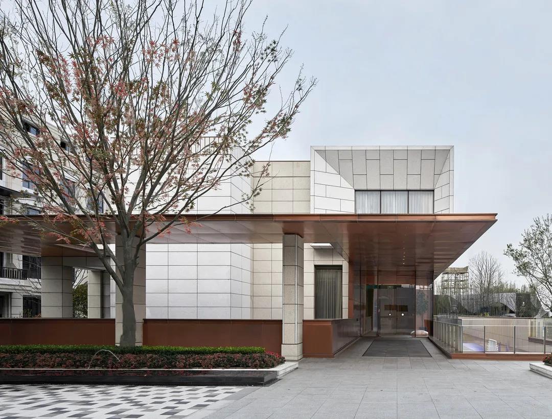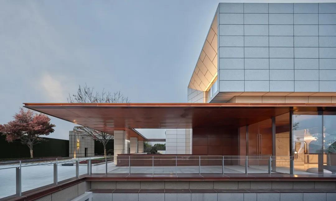 建筑形体的虚实变化间,穿插使用精致的仿铜铝板进行过渡,在每一个微小的细节都希望体现建筑应有的精致和价值感。