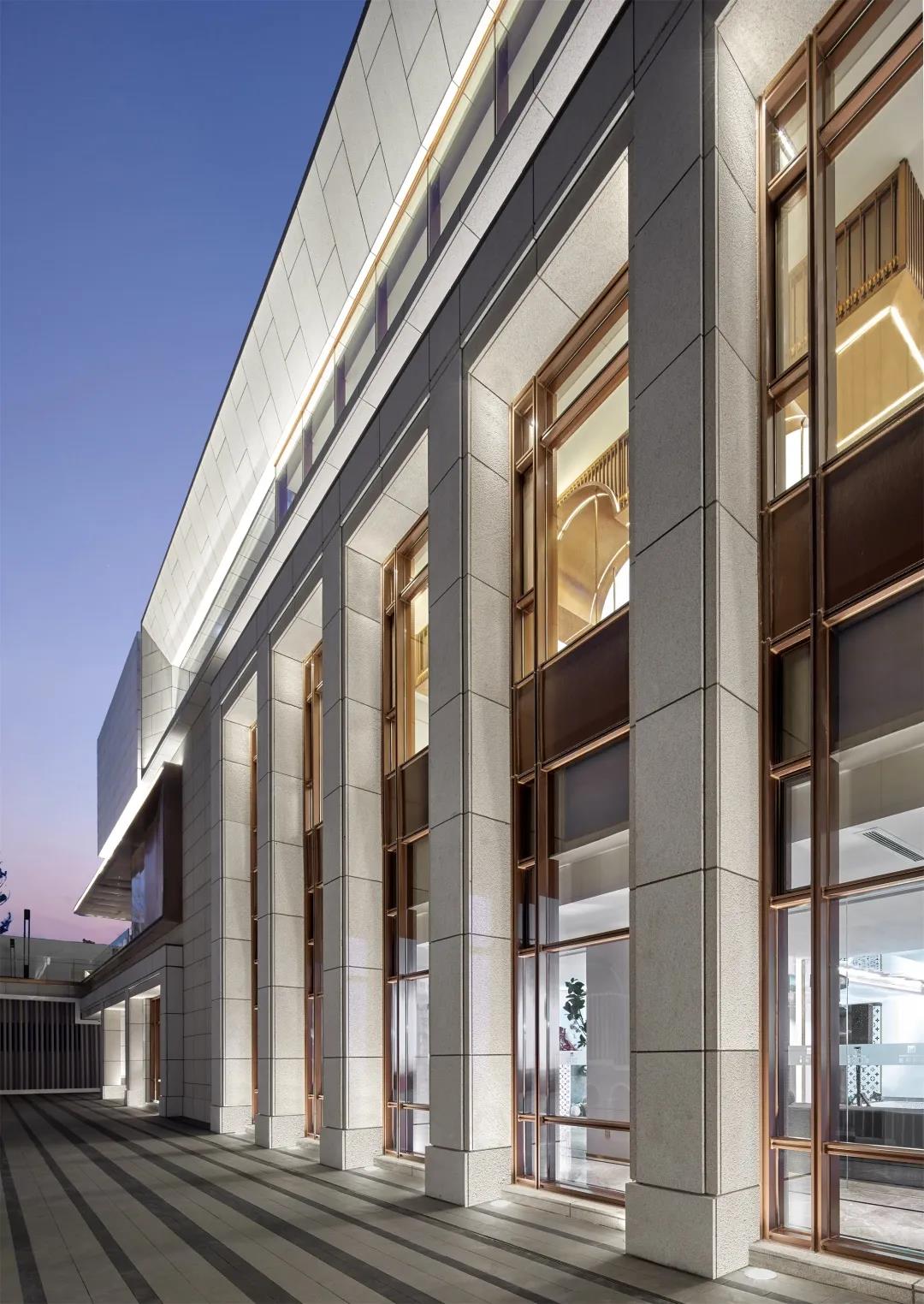 建筑的城市界面,将最直接的功能和最舒适的空间自然呈现给大众,希望引起共鸣。虽然采用了现代的表现手法,但是的局部的体量设计中依然一丝不苟的遵循着古典美学的建筑比例。看似简单的设计背后,是设计师对于材质的选择与组合、形体比例的推敲、拼接面的分缝与拼合等工作的精细考量。