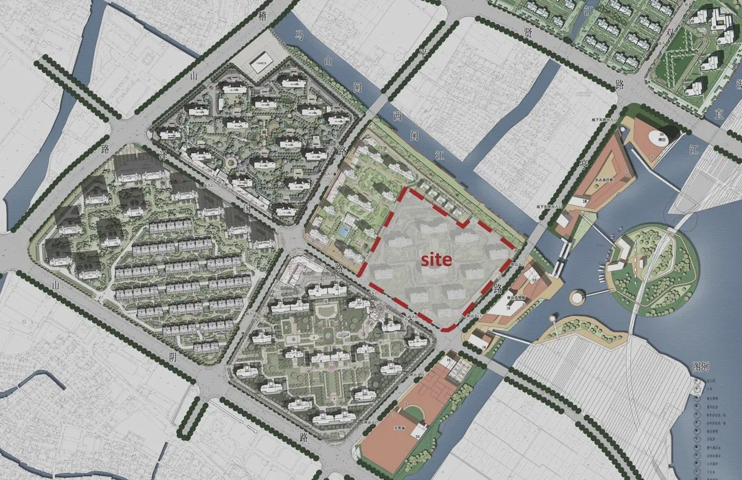 考虑到基地周围环抱同类型住宅小区,北侧临水这一独特的景观资源,如果能够在传统规划布局的基础上,以差异化的策略回应城市空间,创造更优质的居住条件,项目的设计则变得更有意义。