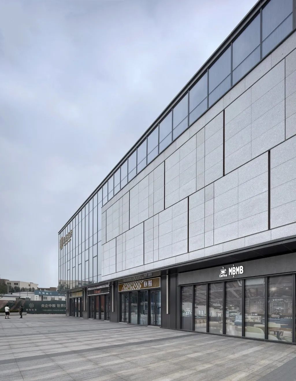 商业街同样作为居者归家的第一道社区场景,激活场所的人气氛围。首层商业采用通透的玻璃材质,视线开阔无阻,接纳人群的聚集。建筑立面根据尺度的差异,将石材、玻璃、铝板进行层次搭配,有效拉近人与建筑的距离、削弱体量感。