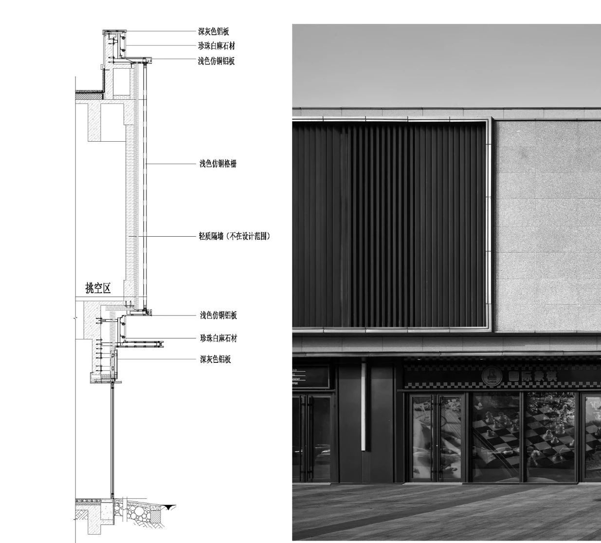 我们在立面设计上反复推敲各材质间的尺度关系,运用古典三段式的布局形制,以现代精铸的手法融合经典元素,从一砖一瓦中感受东方人文的风骨。