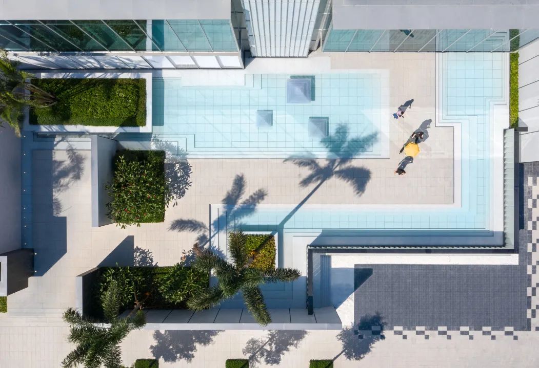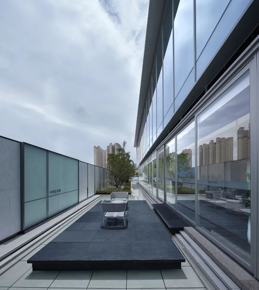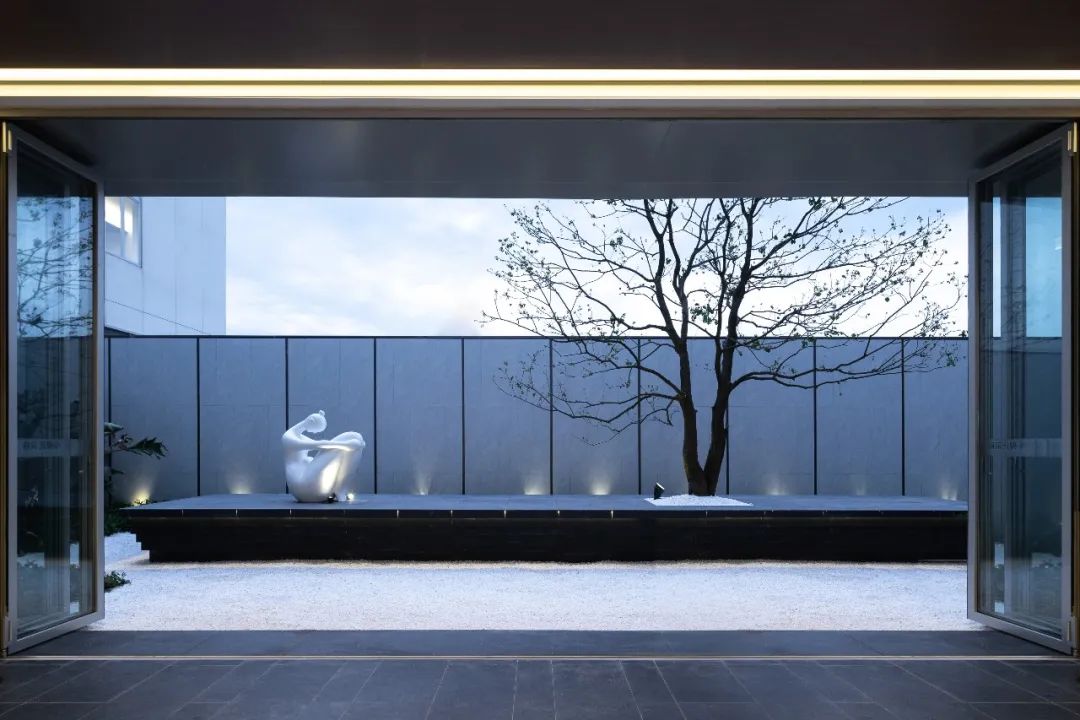 在建筑的塑造上,设计同样从户外与室内的交互拓扑出发,运用四个功能体块之间的穿插错动,串联起生活场景、艺术展厅、社交休闲、观光厅等场所,试图营造出归属于现代都市之间一方精致通透的空间。