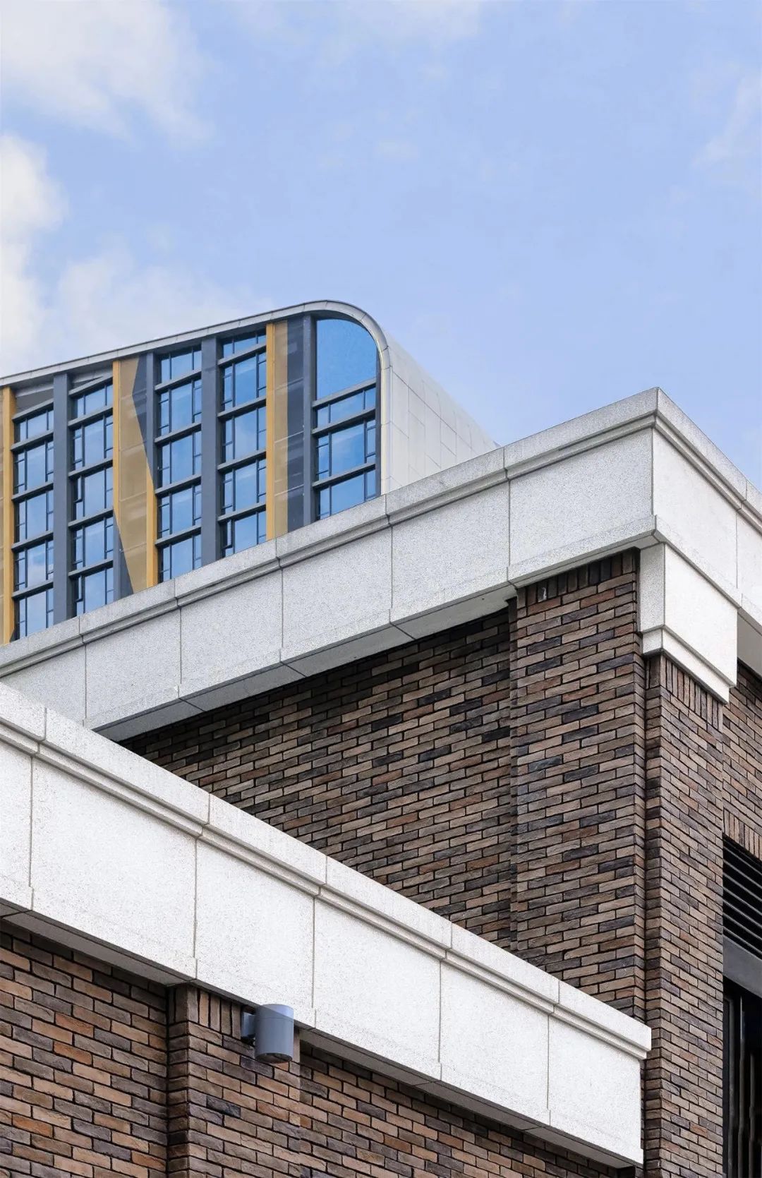 同时进行立面的升级创新,融合现代化建造技艺,摒弃传统褐石面砖材料,以非常规的传统形制传递地域性的建筑语汇。