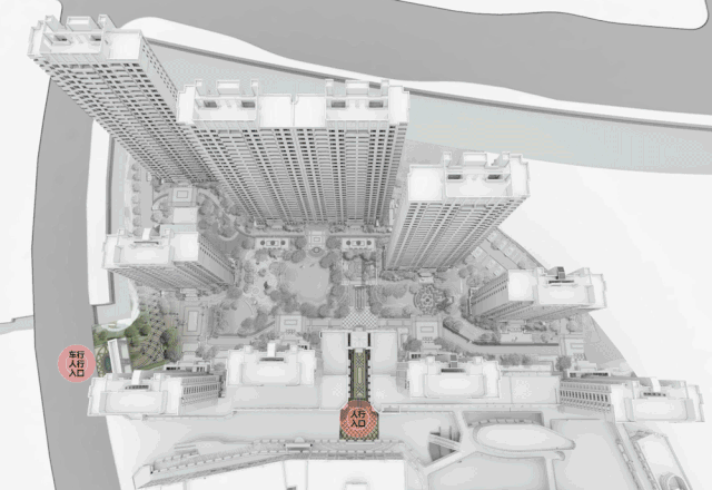 社区内以主入口的中央公园为核心,九栋高层建筑以围合组团形式高低错落分布,沿着北侧商业街建筑高度渐进升高,成为城市界面一道独特的风景线。