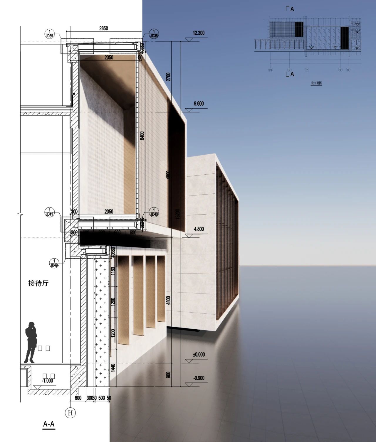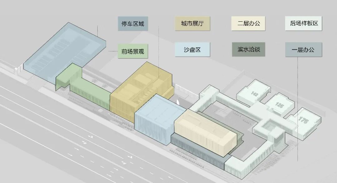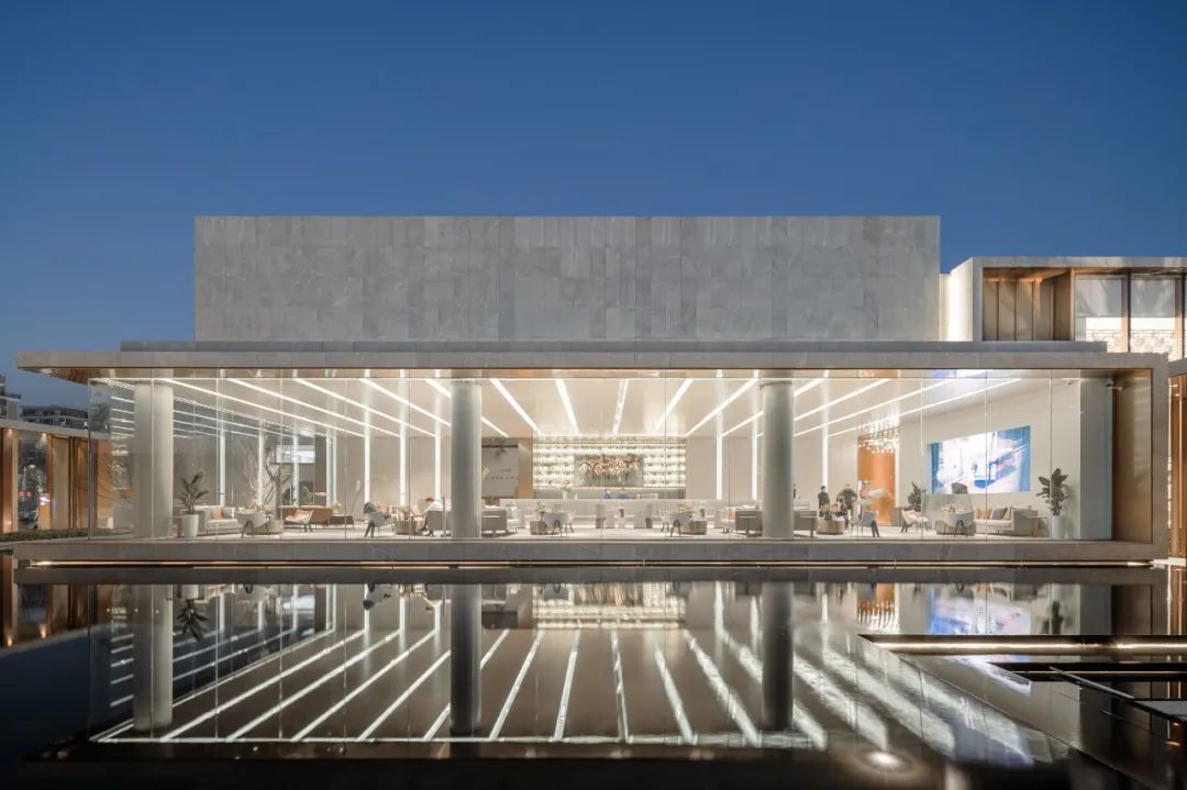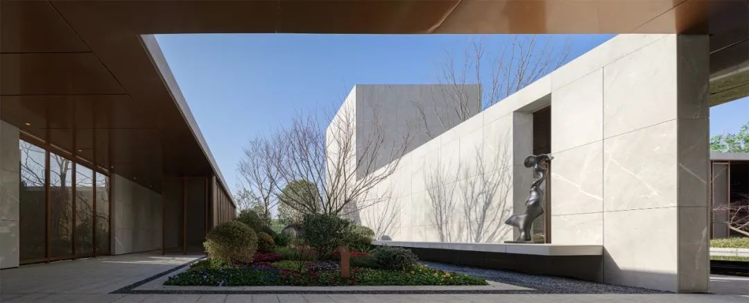 设计充分利用沿街的占地范围,将城市边界与沿街效应做到极致。我们通过建筑形体切分、体块的穿插增强城市街景的气氛,与其说是一个示范区,不如将其看作一个城市艺术馆,面向大众、直面所处的环境,用一种理性的现代城市美学构建新城地标。