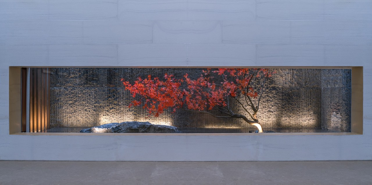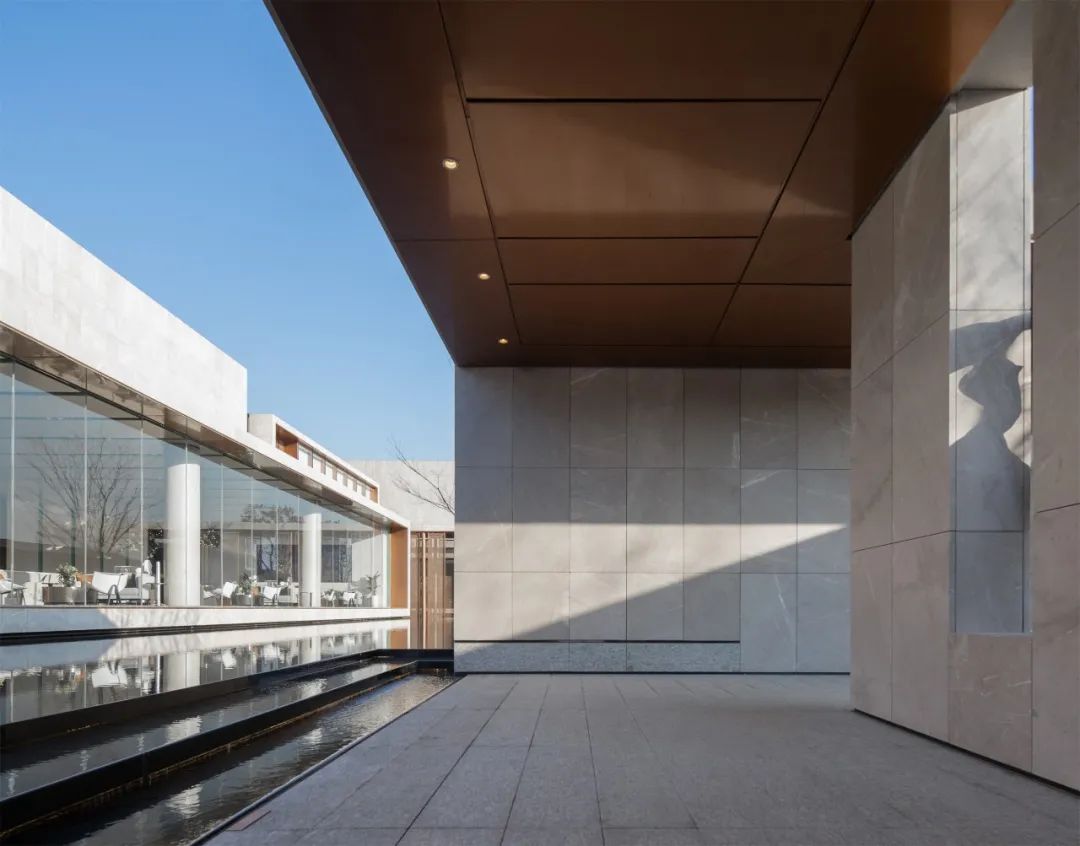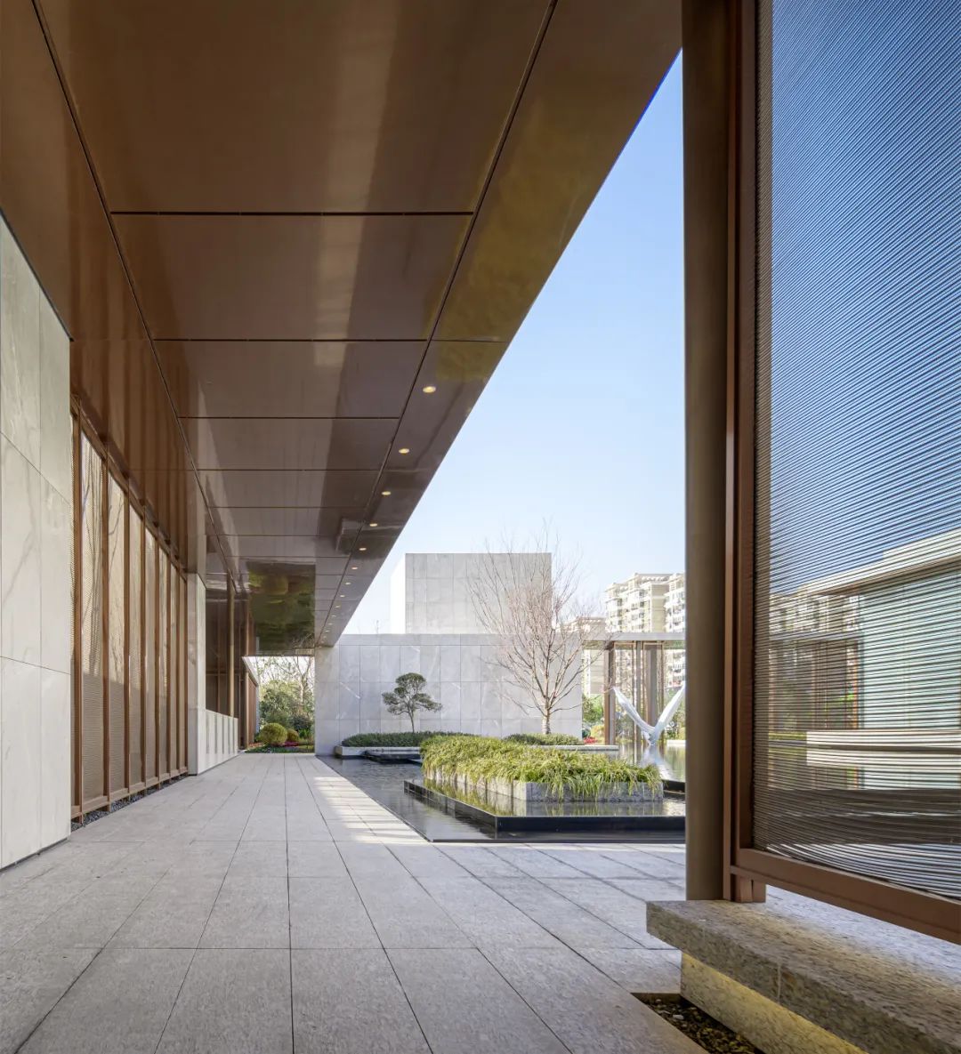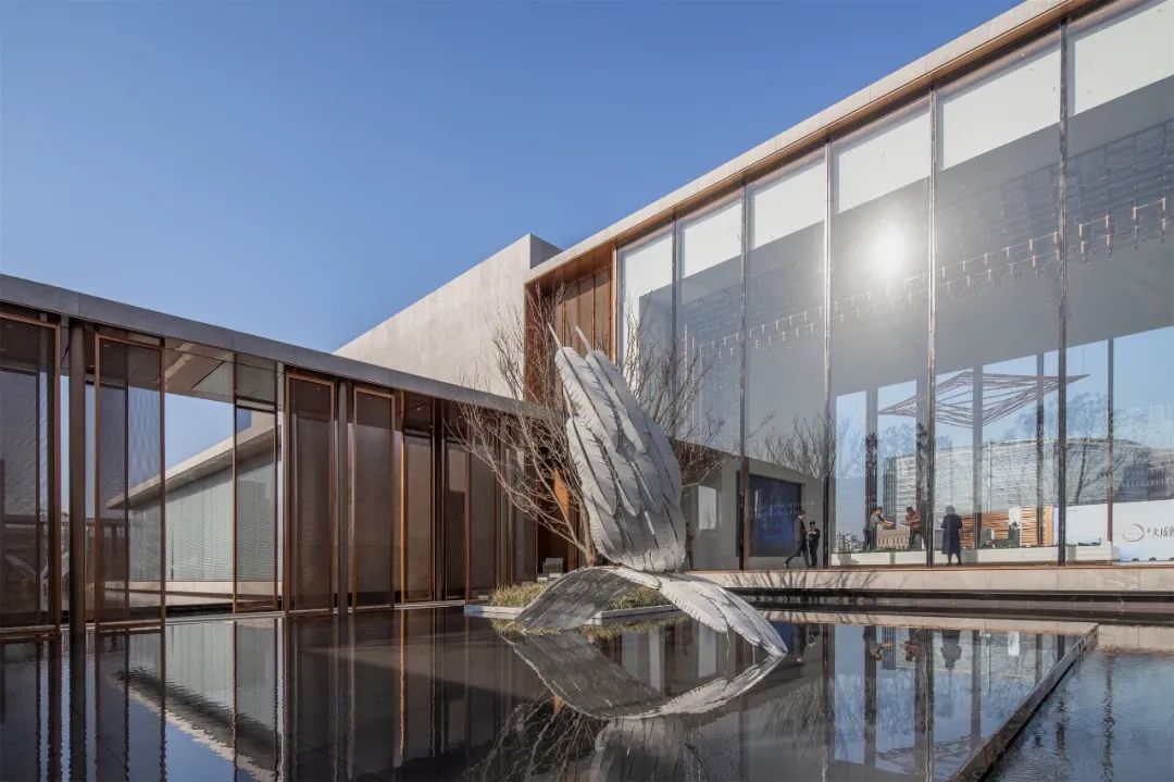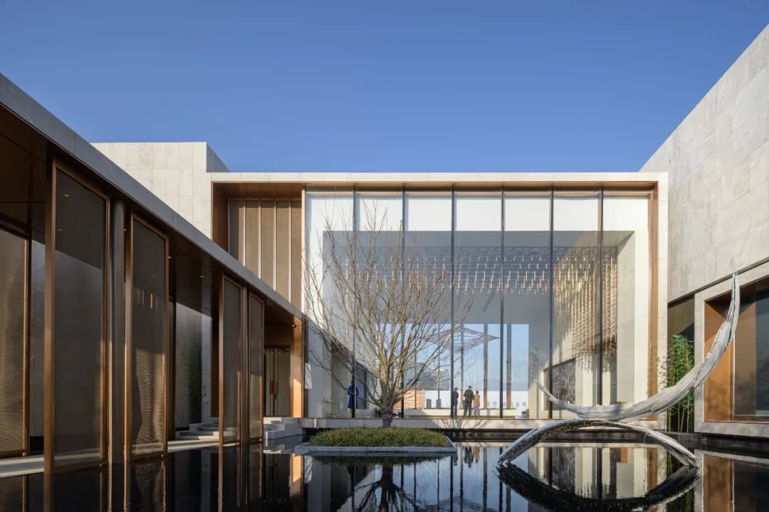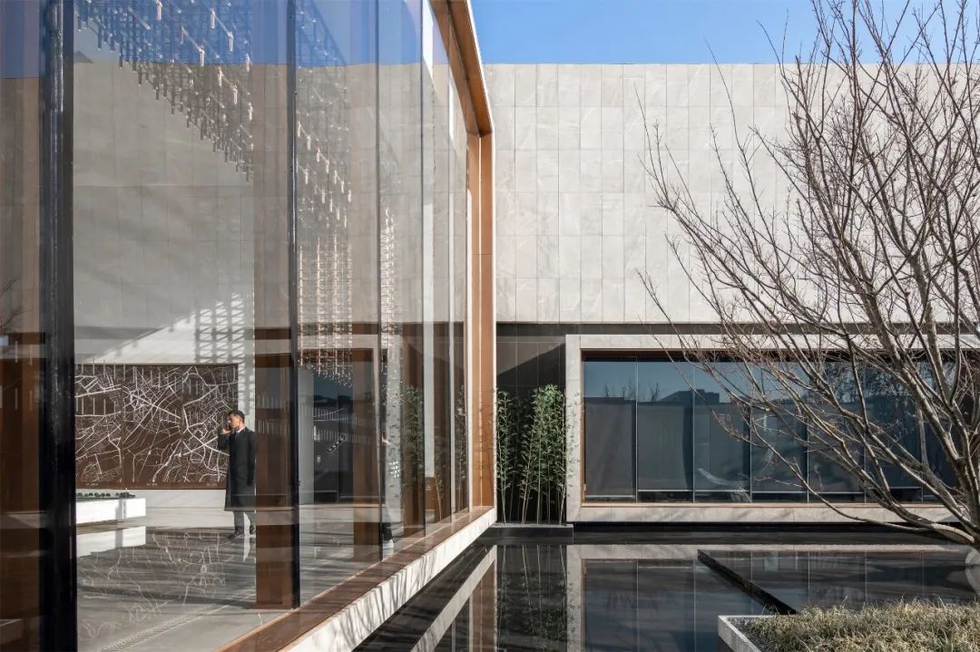 与城市展厅院落空间对比,第二进空间逐渐向内打开,同样是围绕庭院水景展开设计,格局更凸显延展性、人流动线更具丰富感。