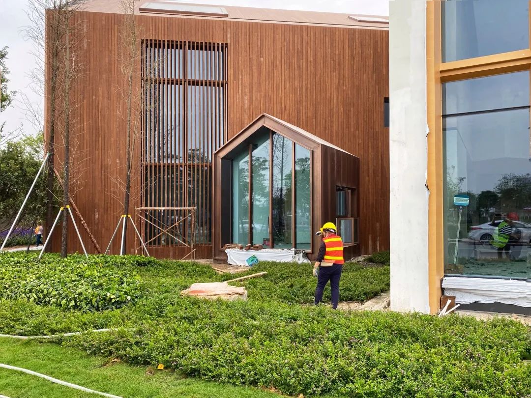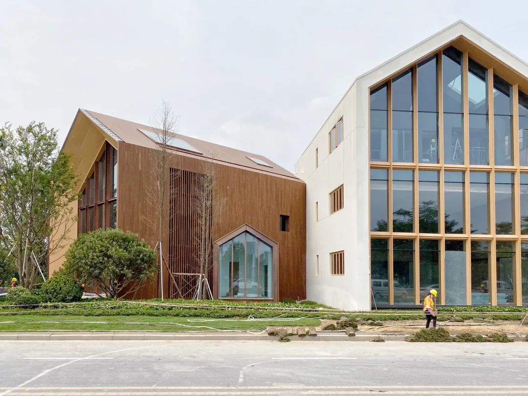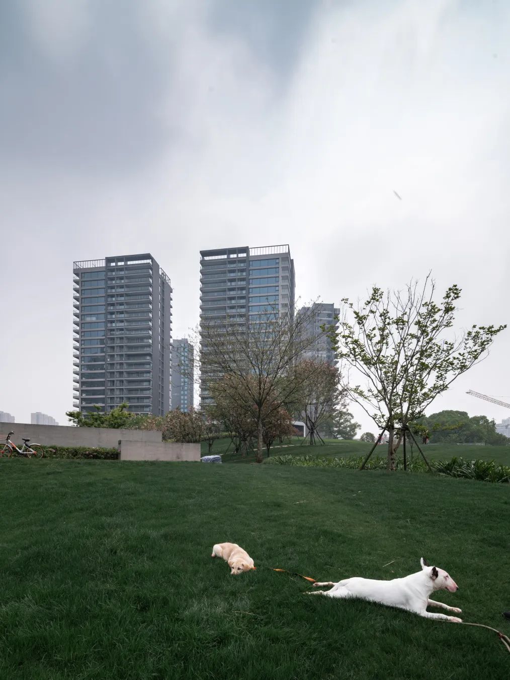 错落交叠的“小房子”,栖于湿地公园边,重回儿时过家家的场景。