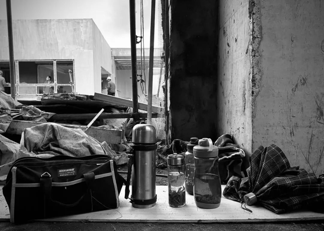 集中而拥挤的居住空间中夹杂着路边简易的书报亭,大树下推着婴儿车的阿姨们互相寒暄,叔叔们则支起小桌子,在楚河汉界里厮杀。
