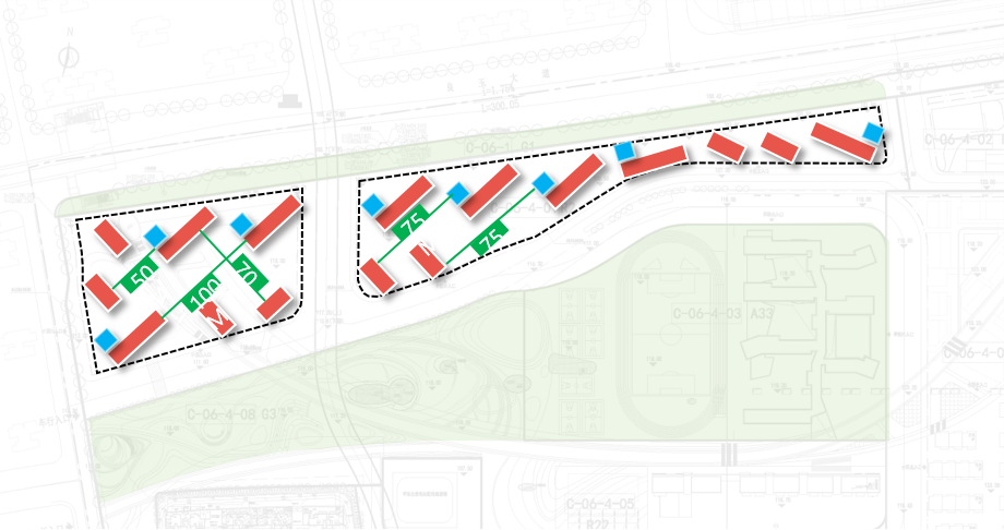 并同步置入步行体系进行串联