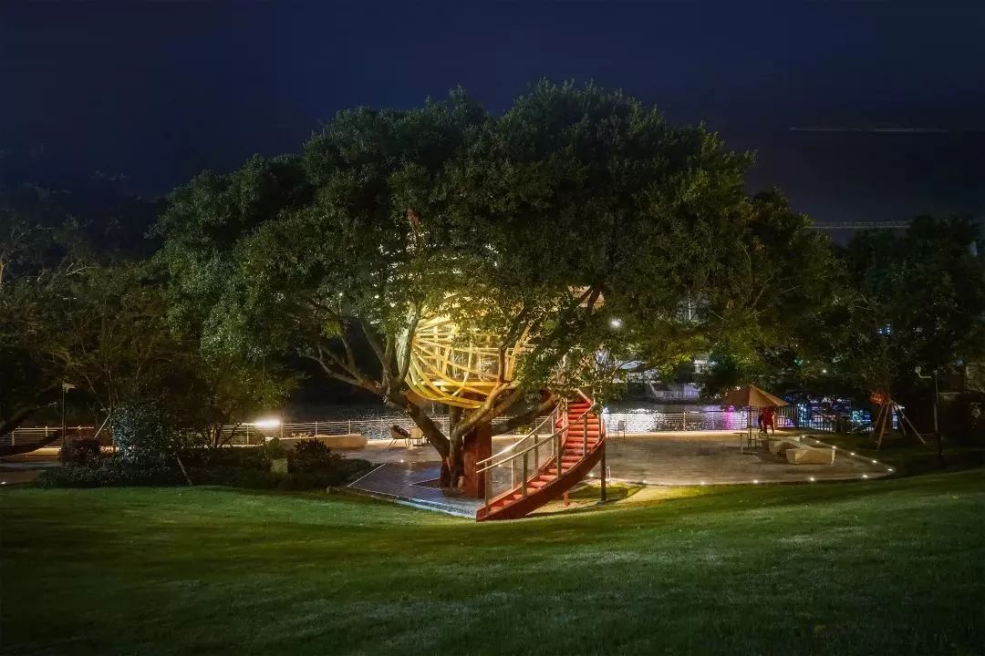 △保留现场的古树,鼓励公众体验城市亲水空间